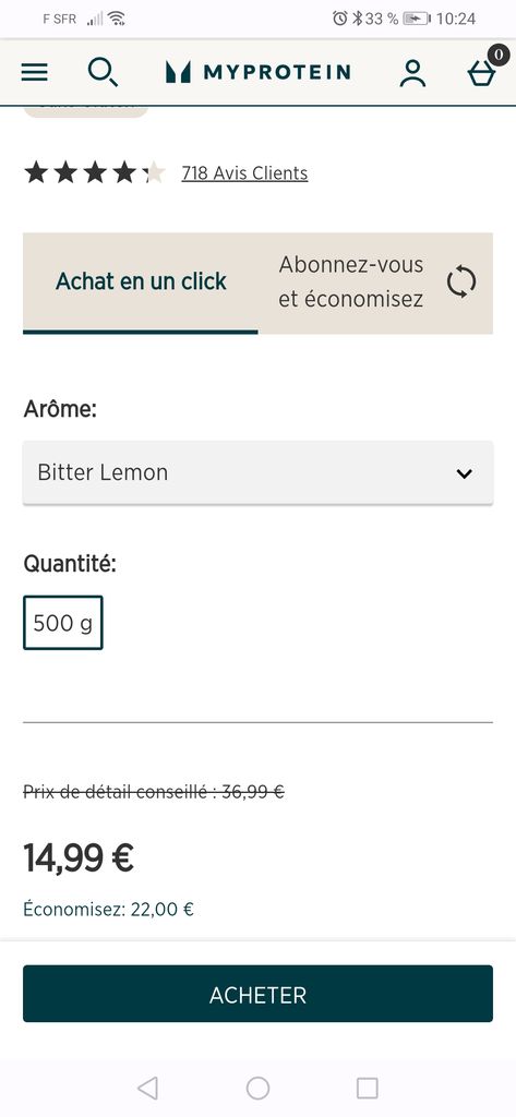 J'ai acheté sur my protéine à 30e. Apparemment ma qualité la dessus c'est plus ou moins la même partout