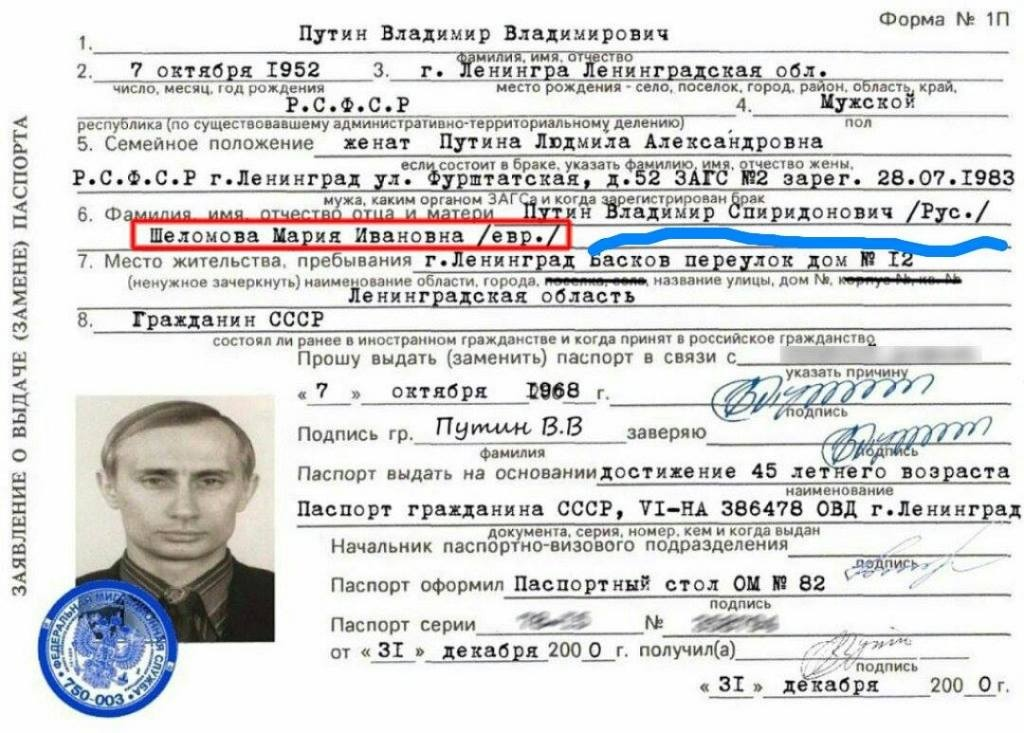 Je ne sais pas je suis en train de creuser un dossier ou sur les documents de Poutine il est écrit que son père est Russe et sa mère Hebreuse.