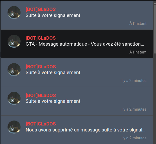 Pourtant les quatre messages étaient bien hors-charte, en fait leurs règles merdiques arrêtent de s'appliquer à partir du moment où tu leur donnes trop de taf ?