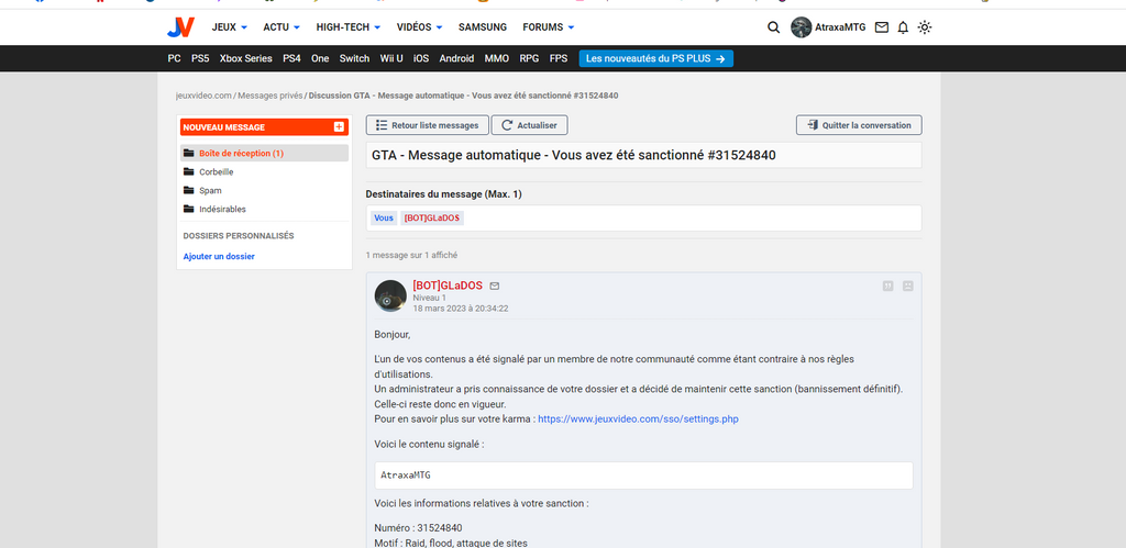 >Un administrateur a pris connaissance de votre dossier et a décidé de maintenir cette sanction (bannissement définitif).