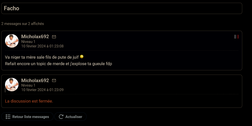 j'ai déja signaler à la licra ce forum et autres associations il sont surement déjà entrain de check le forum