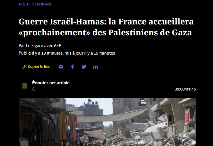 Guerre Israël-Hamas: la France accueillera «prochainement» des Palestiniens de Gaza