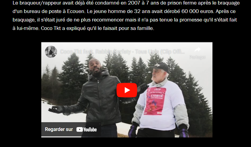 Coco Tkt, le rappeur de Villiers-le-Bel a été condamné à 5 ans de prison ferme suite au braquage lundi matin d'un station-service à Deuil-la-barre. Le jeune homme de 32 ans avait dérobé 476.12 euros en menaçant le gérant avec une arme. Il avait déjà écopé de 7 ans de prison après le braquage d'un bureau de poste en 2007