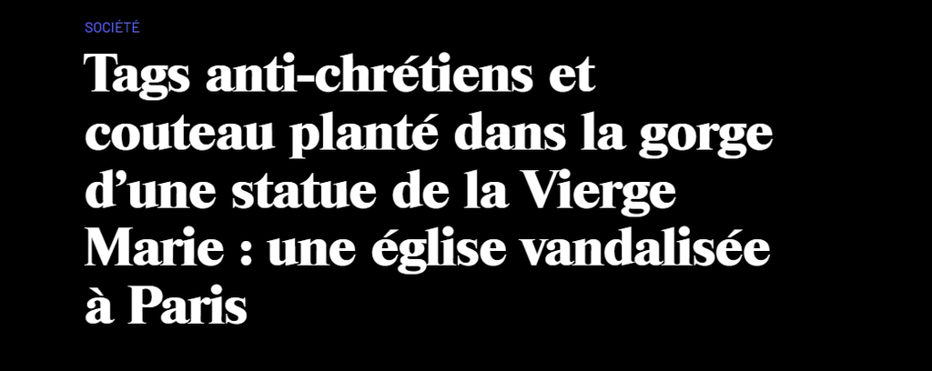 Tags anti-chrétiens et couteau planté dans la gorge d'une statue de la Vierge Marie : une église vandalisée à Paris
