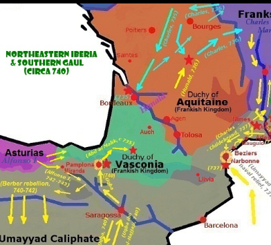 Les premiers musulmans envahissent militairement en France à la suite de leur invasion de l'Hispanie débutée en 711 profitant de la crise du royaume wisigoth instable et envahirent la Région de Toulouse et avancent leurs incursions jusqu'en Bourgogne jusqu'à ce que les Francs chrétiens stoppent leur progression et les battent, puis la Reconquista repoussera les envahisseurs musulmans ainsi que les juifs esclavagistes, marchands ayant profité de l'invasion dans ce qu'on appelait Al-Andalus.