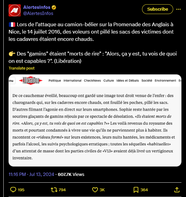 🇫🇷 Lors de l’attaque au camion-bélier sur la Promenade des Anglais à Nice, le 14 juillet 2016, des voleurs ont pillé les sacs des victimes dont les cadavres étaient encore chauds.