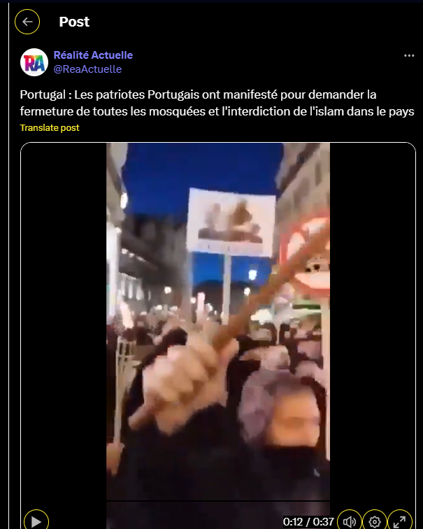 Portugal : Les patriotes Portugais ont manifesté pour demander la fermeture de toutes les mosquées et l'interdiction de l'islam dans le pays