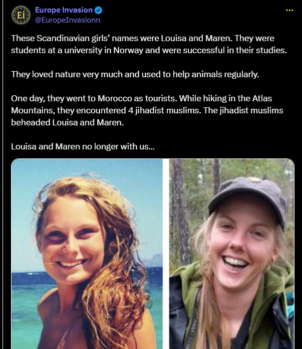 Le véritable choc : les médias juifs en Norvège n’ont JAMAIS rapporté qu'elles avaient été décapitées. Jusqu’à ce que le GTD et la BBC le confirment, cette affirmation a été rejetée comme une insulte islamophobe. Après cela, ils sont restés complètement silencieux et on n’a plus jamais entendu parler de cette histoire. À ce jour.