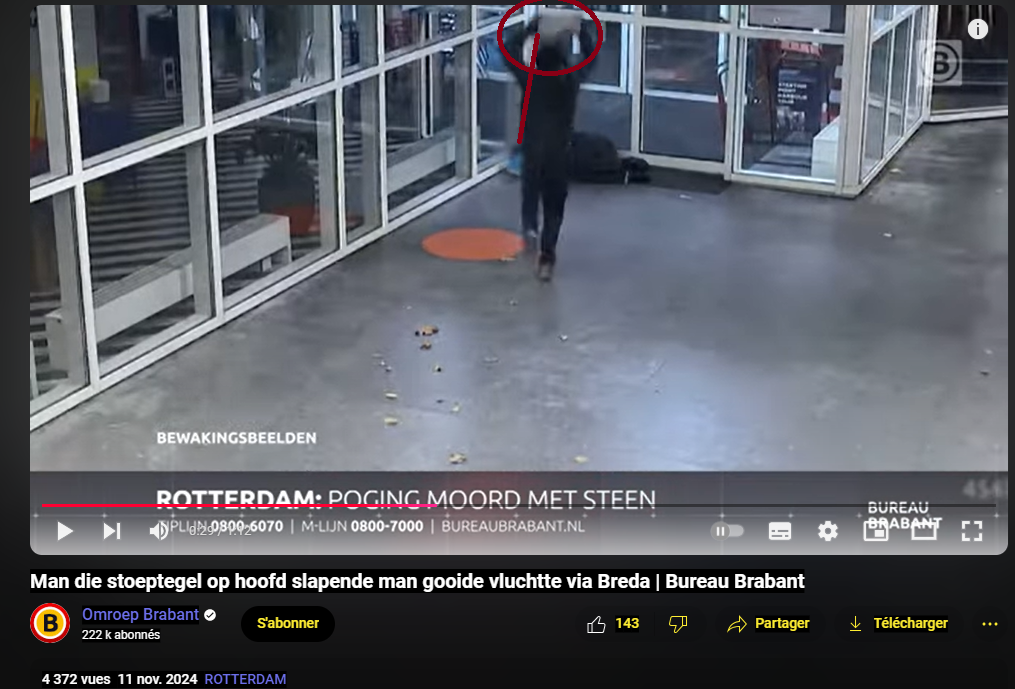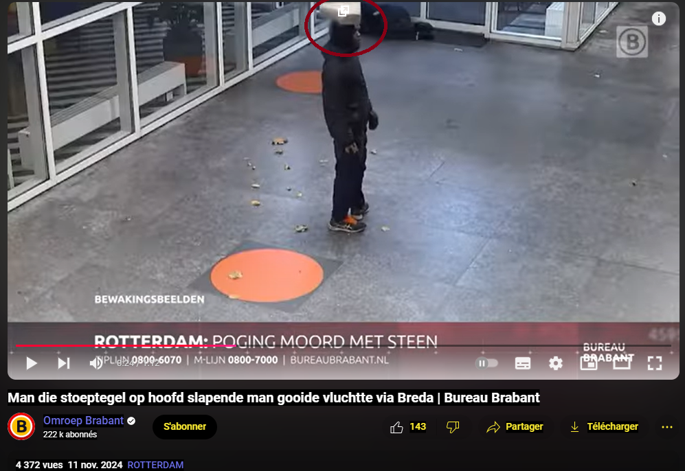 Un homme noir qui a jeté un pavé sur la tête d'un homme endormi s'est enfui via Breda | Bureau Brabant