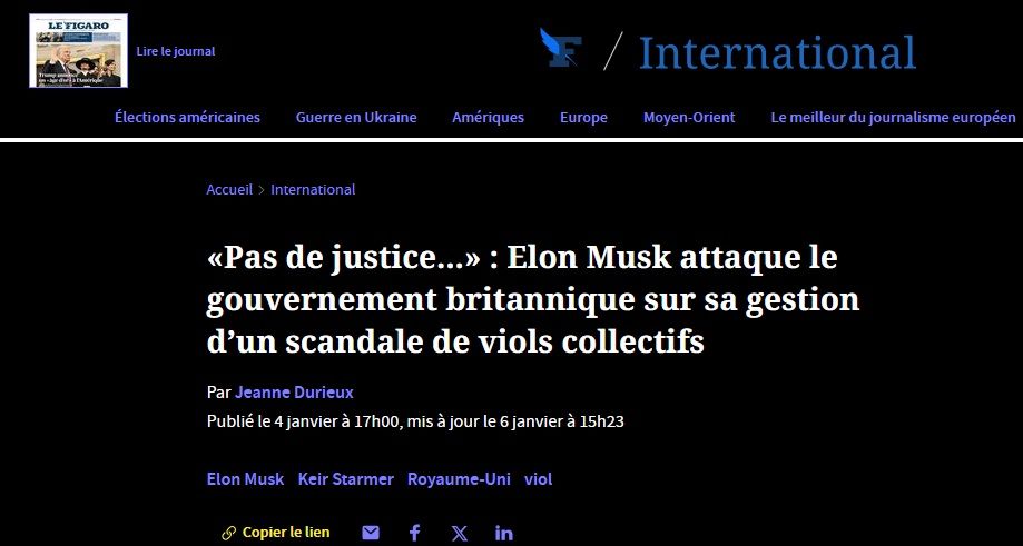 «Pas de justice...» : Elon Musk attaque le gouvernement britannique sur sa gestion d’un scandale de viols collectifs