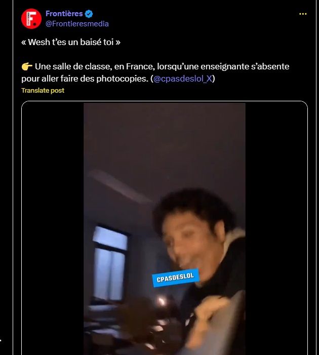 👉 Une salle de classe, en France, lorsqu’une enseignante s’absente pour aller faire des photocopies. (@cpasdeslol_X)