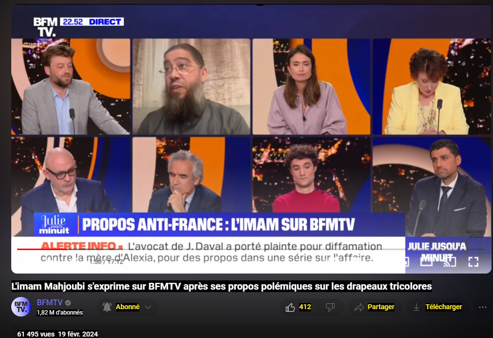 L'imam Mahjoubi s'exprime sur BFMTV après ses propos polémiques sur les drapeaux tricolores