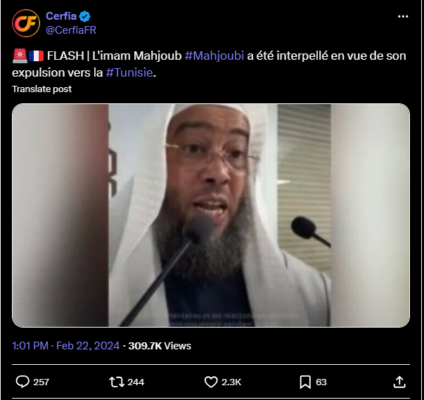 🚨🇫🇷 FLASH | L'imam Mahjoub #Mahjoubi a été interpellé en vue de son expulsion vers la #Tunisie.