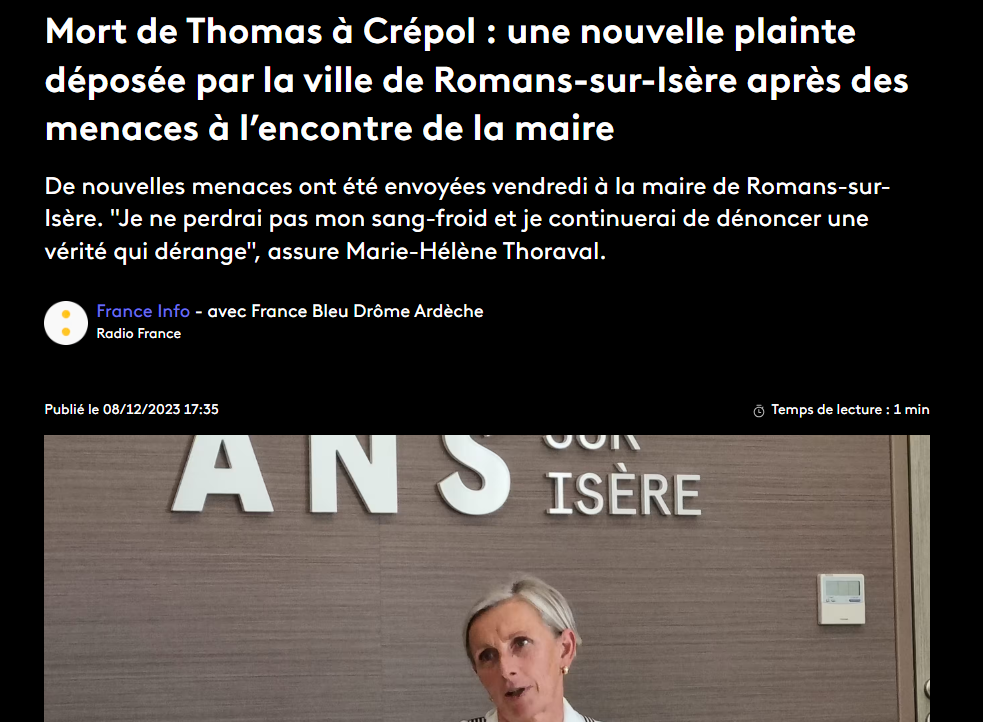 Mort de Thomas à Crépol : une nouvelle plainte déposée par la ville de Romans-sur-Isère après des menaces à l’encontre de la maire