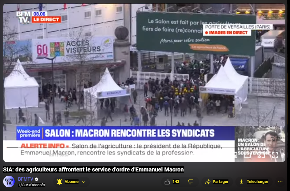SIA: des agriculteurs affrontent le service d'ordre d'Emmanuel Macron