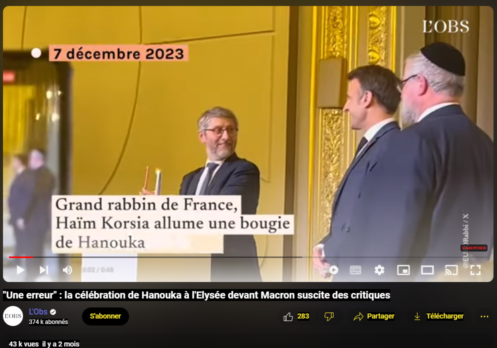 Le grand rabbin de France a allumé une bougie de Hanouka à l'Elysée.