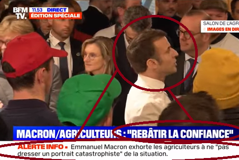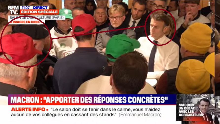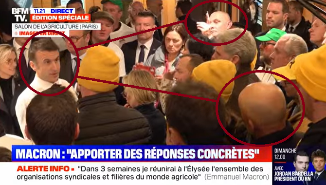 Un monsieur rappelle, au salon de l'agriculture, que Macron avait filé, sans problème, 3 milliards d'euros à Zelensky pour nourrir le conflit mais pas d'argent pour les agriculteurs. Macron dit des inepties comme d'habitude pour noyer le poisson.
