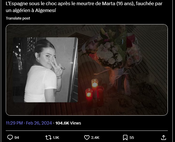L'Espagne sous le choc après le meurtre de Marta (16 ans), fauchée par un algérien à Algemesí