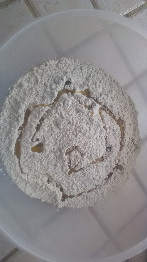 On ajoute deux sachets de levure boulangere de merde de lidl, ou de la levure bonne qualité, ou mieux, du levain. on ajoute également le sel.
