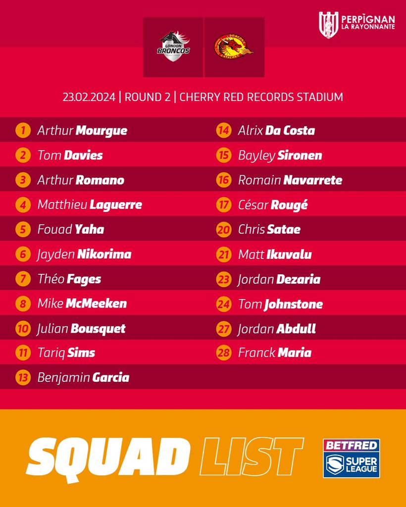 On a 2 joueurs suspendus suite au 1er Match contre Warrington