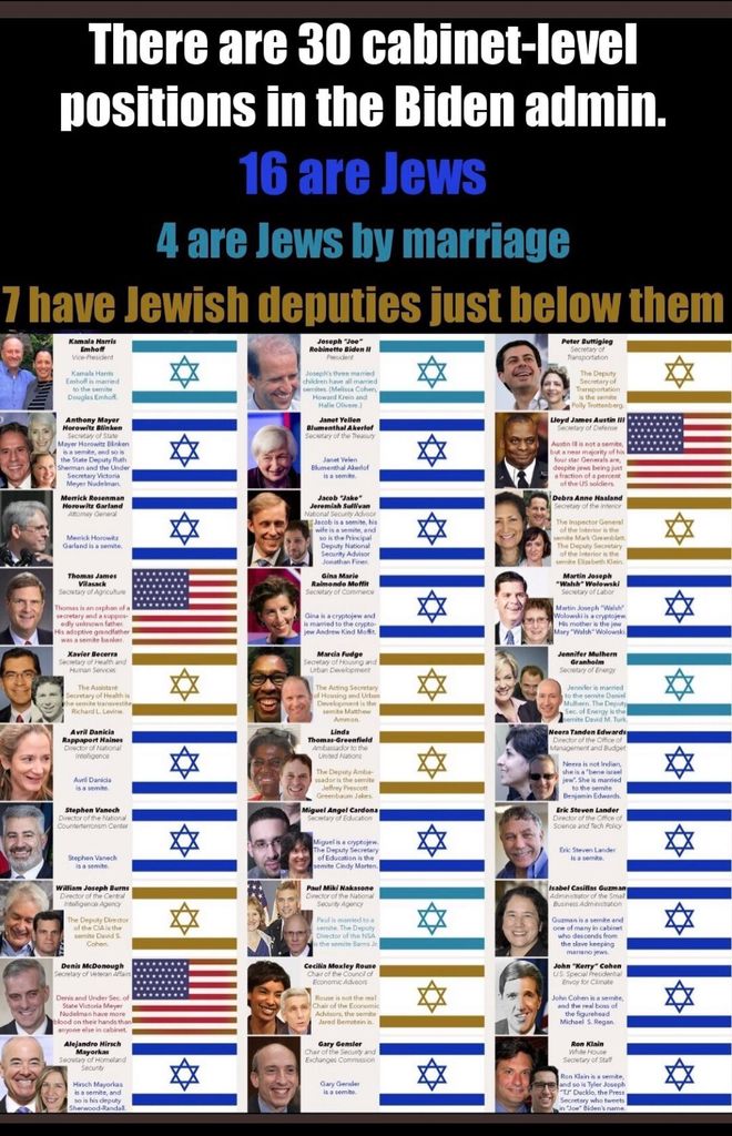 Le Cabinet de Biden : 27 membres sur 30 sont Juifed😱😱