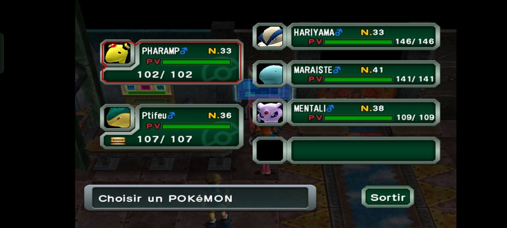 C'est un peu les seuls quand même kheys :Zidanemonstre: Tes 2 évolutions d'Evoli, les 3 chiens légendaires (ou bien un petit Pharamp à la place de Raikou), le starter 2G, et puis les quelques pokés décents que le jeu t'offre comme Hariyama ou Charmina