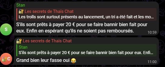 plus personne n'ose parler, c'est supprimé à vue. Il faudrait que quelqu'un poste subtilement
