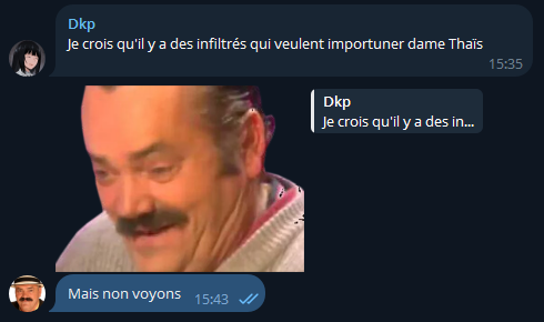 c'est moi dkp et ils m'ont ban du télégram pour ce msg