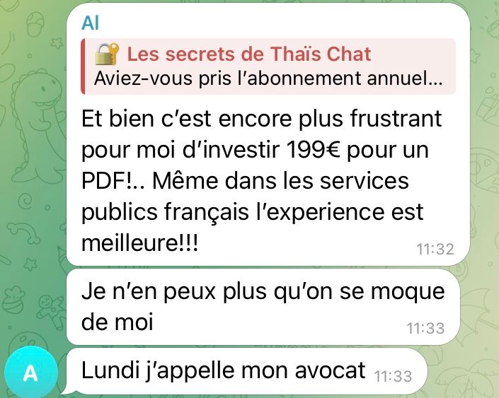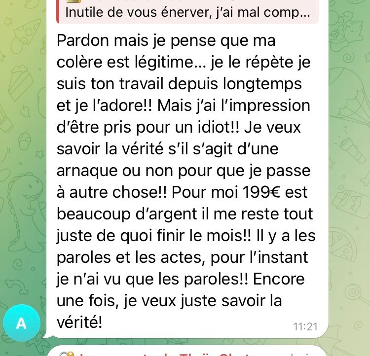 Tu as accès a un forum fait sur wordpress, un groupe télégram et un pdf de 37 pages généré par IA, des videos exclusifs qui te disent de ne pas porter des jeans slims et peut être une soirée privé dans l'année en sa précense