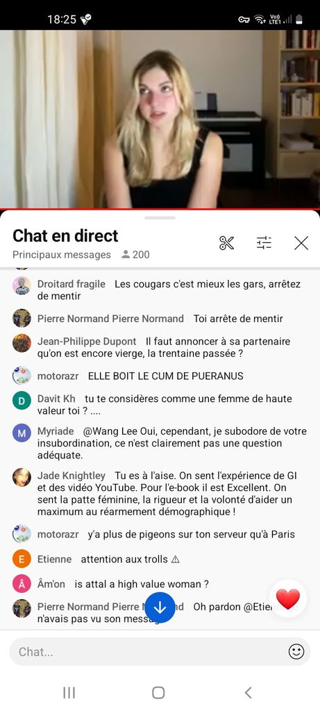 La tête qu'elle a fait à la fin quand elle a vu qu'il n'y avait que des trolls dans le chat