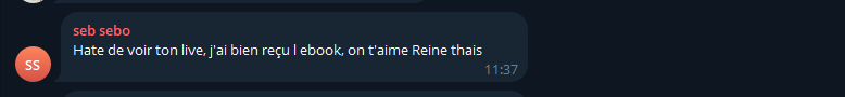 personne ne sait sur son telegram, elle ne l'a indique nul part donc elle a pas encore décidé mais je reste a l'affut