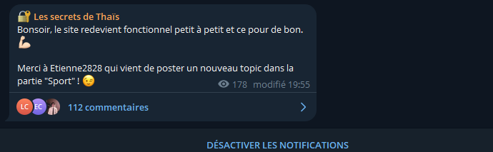 son forum est tellement inactif qu'elle remercie en personne quand quelqu'un poste un topic