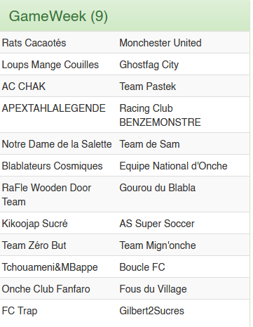 MATCHS A VENIR POUR LA JOURNÉE 9 :