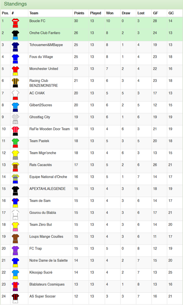 On commence a entrer dans la phase critique de la Ligue Onche, il ne reste que 10 journées à jouer et donc 30 points maximum à prendre. Ceux en bas du classement ont du souci à se faire.