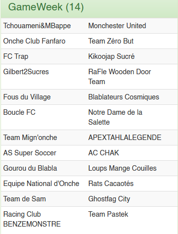 MATCHS A VENIR POUR LA JOURNÉE 14 :