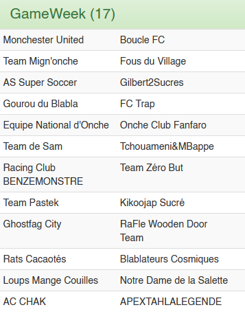 MATCHS A VENIR LORS DE LA JOURNÉE 17 :