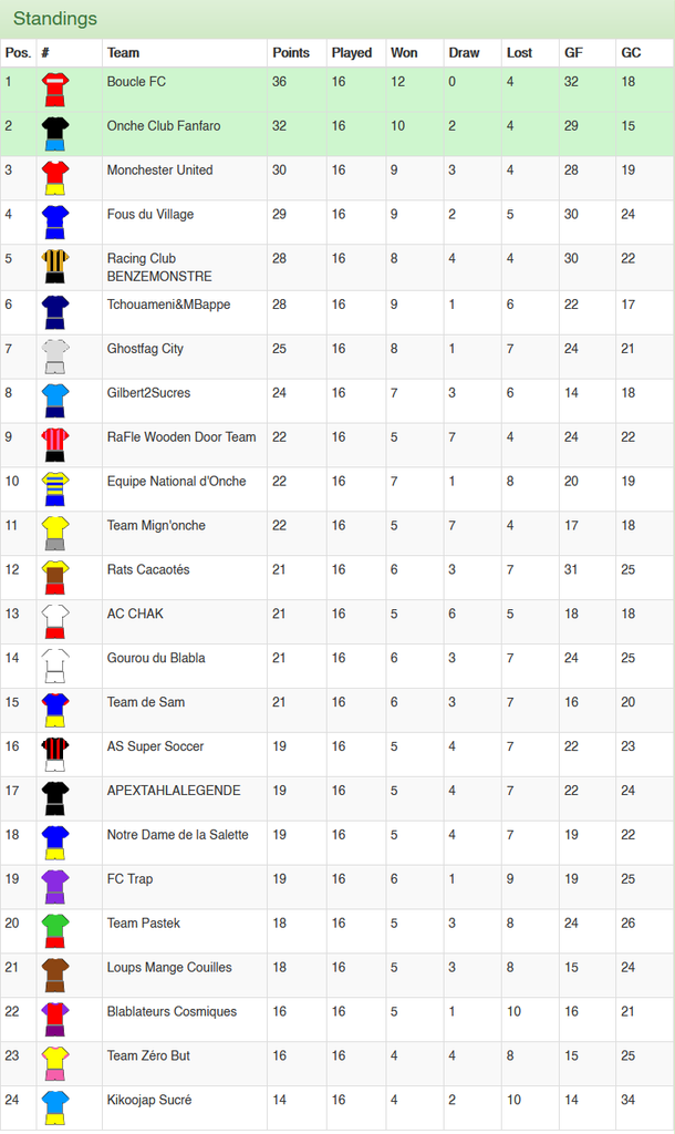 Les 2 tiers de la compétition sont passés, on entre dans la période des ÉLIMINATIONS puisque les équipes les moins bien classées vont finir par avoir tellement de retard de points qu'il leur sera mathématiquement impossible de gagner la Ligue Onche. A la fin de cette journée il restera 21 points potentiels par équipe, accrochez-vous bien ça va secouer avec ce résumax.