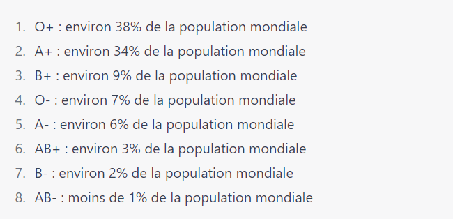 Je connais pas mon groupe sanguin, car jamais hospitalisé et ce n'est pas dans mon carnet de santé, le seul particularité c'est que ma mère était A- (hybride reptilienne)