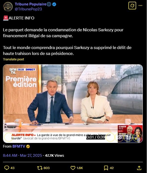 Tout le monde comprendra pourquoi Sarkozy a supprimé le délit de haute trahison lors de sa présidence.