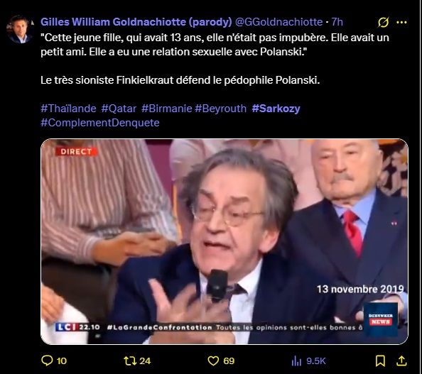Le très sioniste Finkielkraut défend le pédophile Polanski.