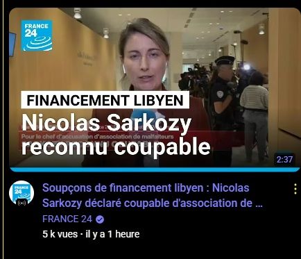 Soupçons de financement libyen : Nicolas Sarkozy déclaré coupable d'association de malfaiteurs
