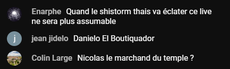 Il y a un mec dans le chat qui l'a traité de boutiquier ça la brisé Ahi
