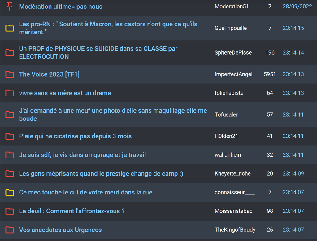 Déjà c’est full incel full aw full malade ce forum est vachement bien en toute honnêteté à l’époque je me faisais draguer par un modo qui m’avait donner quelque avantage et me faisait des crises en me virant j’ai quelques dossiers sur la modération des enfers du 18-25