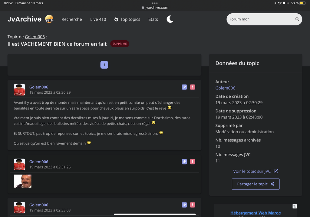 Ça me fait chialer de rire, jusqu'à maintenant chaque topic JVCuck qui a été partagé ici où ces golems parlaient mal de nous a été 410