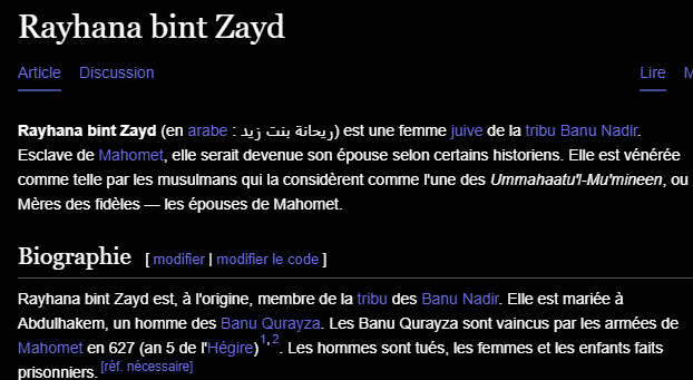 Il y a un truc que vous devriez vous demander... Muhammad fait des captifs de guerre, puis il décide d'affranchir la femme en question, vous vous dites pas que c'est du foutage de gueule ? Genre, il fait esclave pour ensuite dire, tu n'es plus esclave car tu as accepté de devenir musulman, avant que le conflit n'arrive, elle n'était pas esclave, c'est chaud.