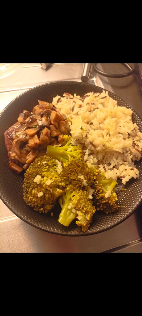 prétention de l'assiette : trop chargé en brocolis et en riz, l'équilibre n'est pas assé respecté et il manque une touche de jaune safrané sur le riz et de rouge paprika pour équilibré le visuel, je note donc 1 point de plus .
