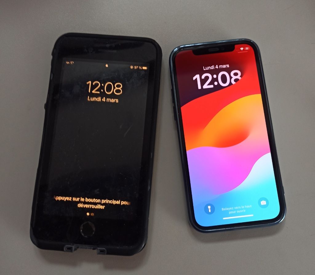 Mon ancien iphone de gauche à la limite, si il le faut