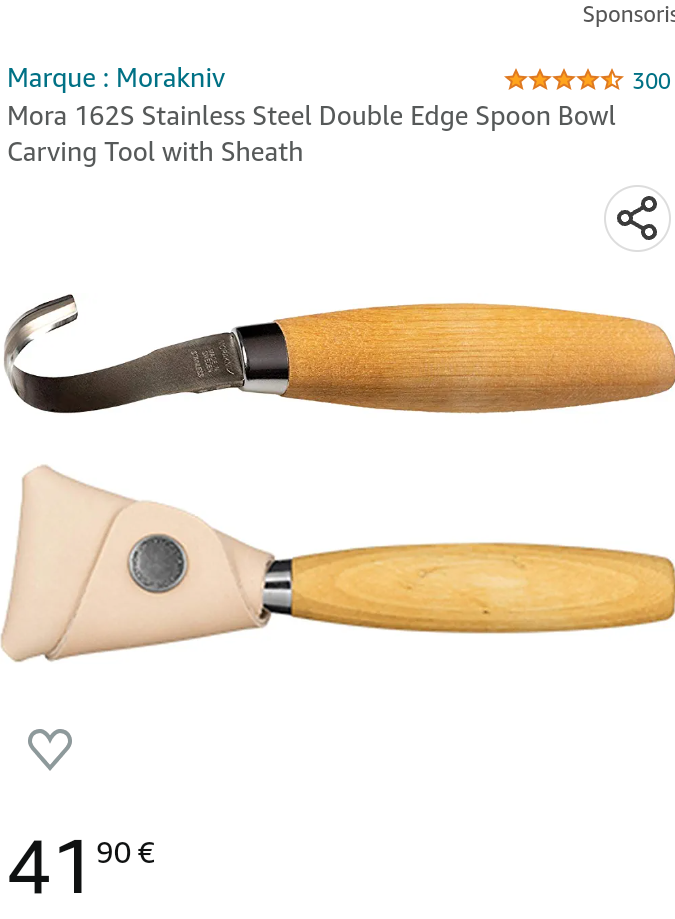 Je dirai (de tête pas sur que les prix soient ok) , une gouge courbée 20€ , un couteau a sculpter droit mora 15€ , un couteau courbe mora 20€. Une râpe à bois plate + une triangle + une ronde a peu près 15€ (Parkside style) , une scie égoïne 20€, deux Serre joint (un à vis , un "rapide) a peu pres 15 chacun.