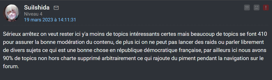Faites des screens putain vous savez très bien que les topics sautent comme des mouches
