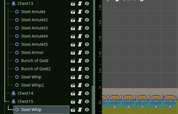 Aujourd'hui j'en suis à la gestion de "salles" comme sur Isaac. Le système qui ouvre/ferme les portes, donne les récompenses, etc. Et ça demande beaucoup de choses interconnectées entre biomes, map... Maps qui doivent aussi gérer la RNG avec des seeds... Sacré bordel